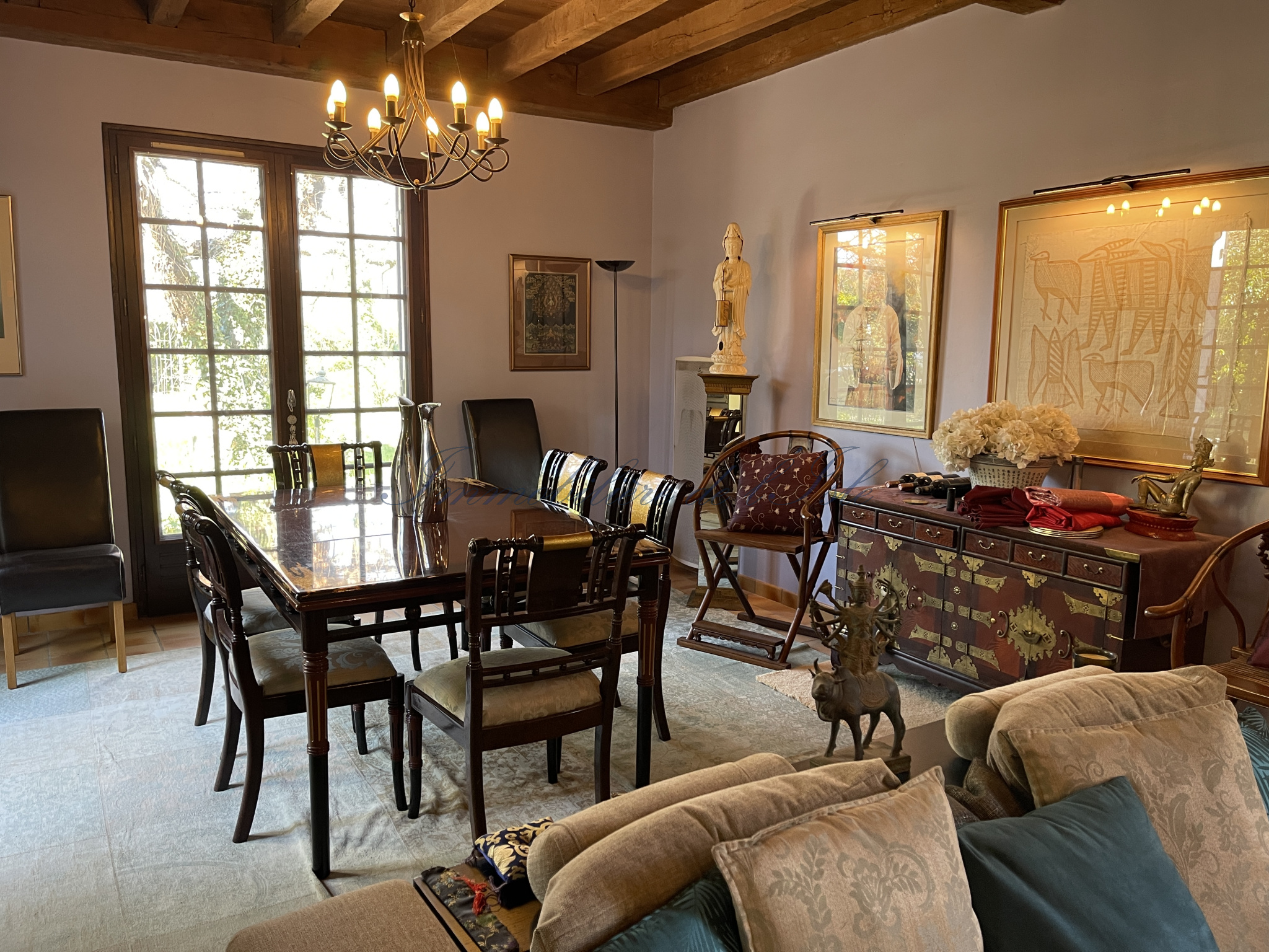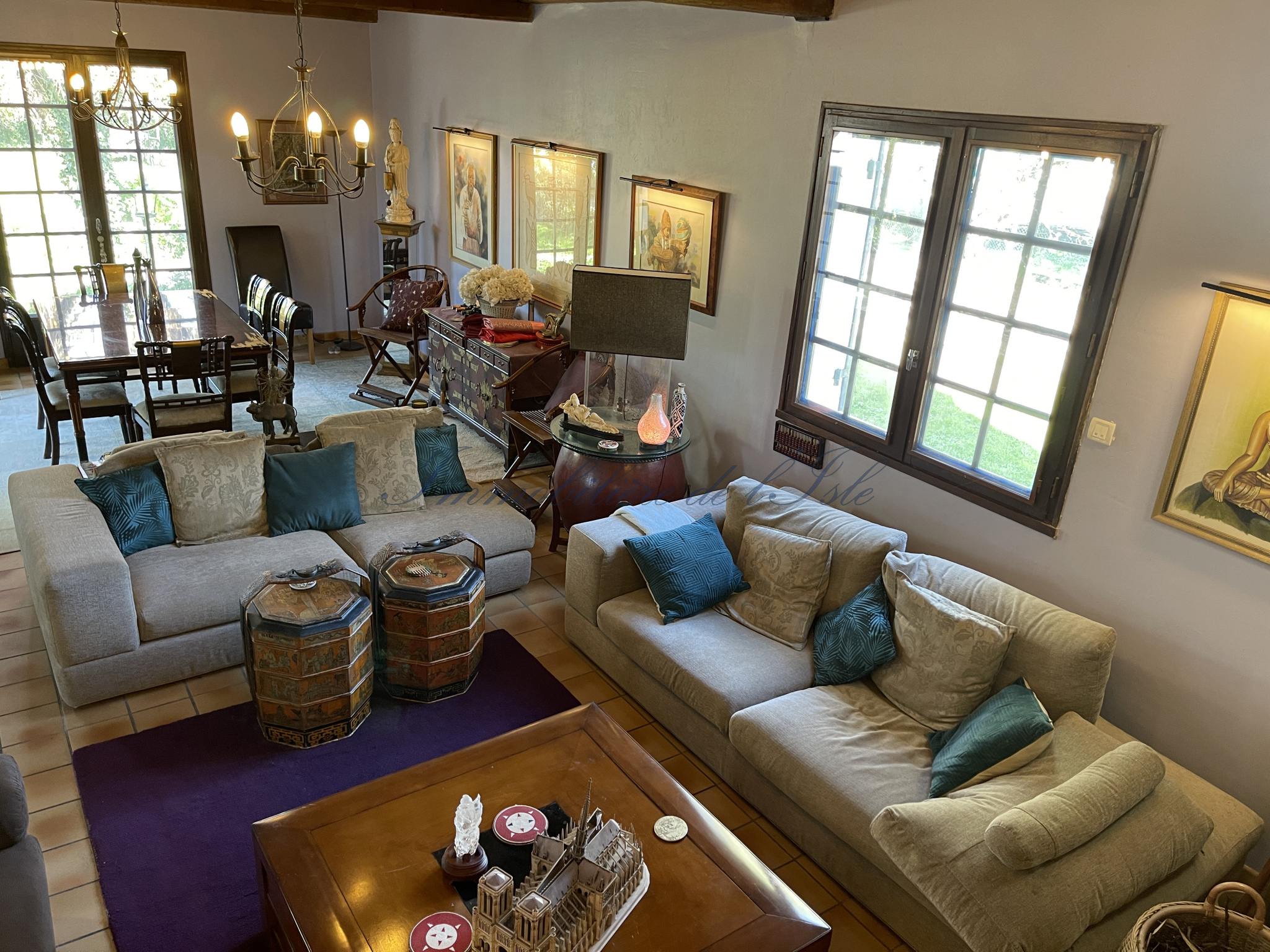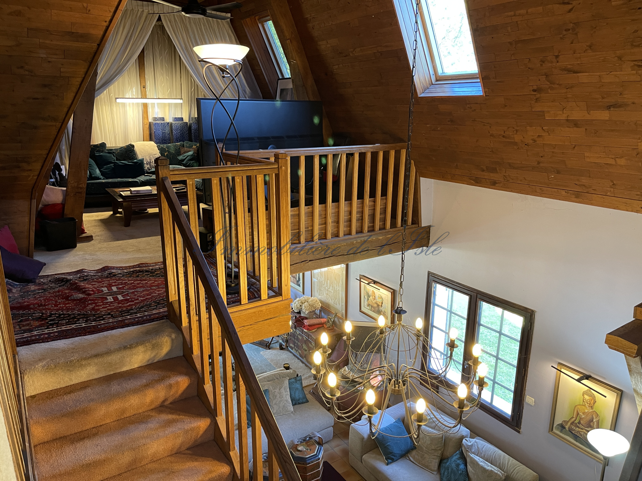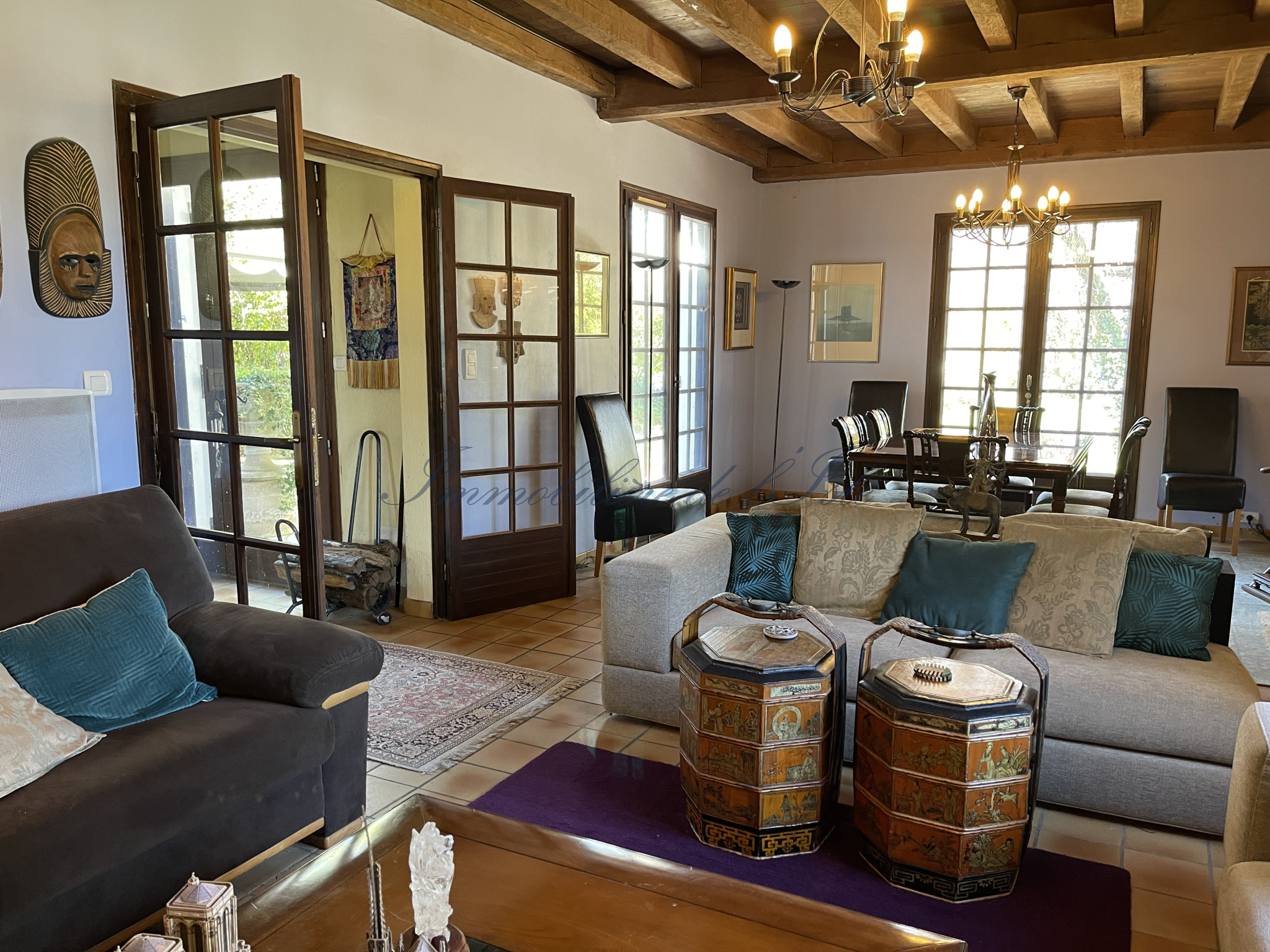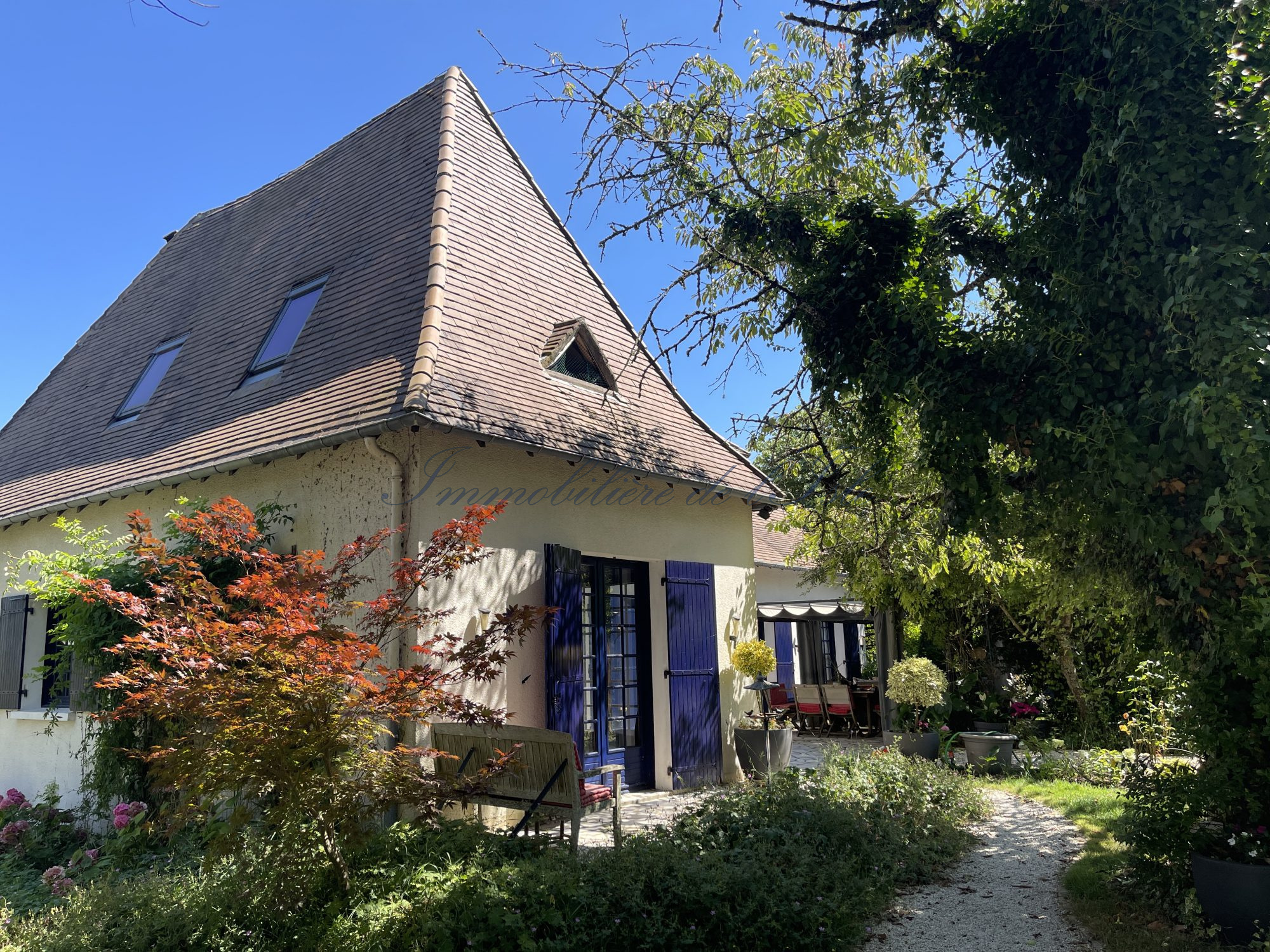 Aux portes de Périgueux, à proximité immédiate de quelques commerces et école accessibles à pied, découvrez cette élégante maison périgourdine de construction traditionnelle, offrant de généreux volumes et nichée au coeur d’un parc paysager soigneusement arboré, avec piscine et garage. Idéalement située à seulement quelques minutes du centre de Périgueux, cette propriété familiale de caractère séduit par son cadre de vie aussi agréable à l’intérieur qu’à l’extérieur. Développant environ 195 m2 habitables, la maison a été pensée pour offrir une vie de plain-pied confortable. Vous serez accueilli par un vaste séjour baigné de lumière grâce à ses nombreuses ouvertures sur le jardin, agrémenté d’un poêle à bois apportant chaleur et convivialité. La cuisine familiale, spacieuse et fonctionnelle, dispose d’un espace dînatoire et s’accompagne d’un cellier / arrière-cuisine. Le rez-de-chaussée propose également trois belles chambres ainsi qu’une salle de bains complète avec douche et baignoire, permettant un confort de vie optimal sur un seul niveau. À l’étage, une superbe mezzanine sous charpente apparente confère beaucoup de cachet à l’ensemble et offre un espace polyvalent idéal pour un coin lecture, une salle de jeux ou un salon TV. Deux chambres supplémentaires ainsi qu’une salle d’eau viennent compléter ce niveau. La maison bénéficie de prestations de qualité et d’un confort moderne (DPE D, climatisation, adoucisseur d’eau, tout-à-l’égout). Un sous-sol semi-enterré abrite un garage ainsi qu’un atelier. À l’extérieur, le parc paysager, richement arboré et agrémenté d’arbres fruitiers, invite à la détente. Une terrasse avec pergola et une piscine de belle dimension viennent parfaire cet environnement idéal pour profiter pleinement des beaux jours. Cette propriété allie charme, volumes et qualité de vie dans un environnement privilégié. Une maison idéale pour accueillir une famille en quête de confort et de sérénité, à proximité immédiate de Périgueux. À découvrir sans tarder.