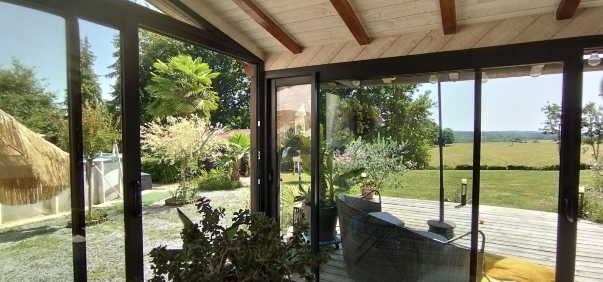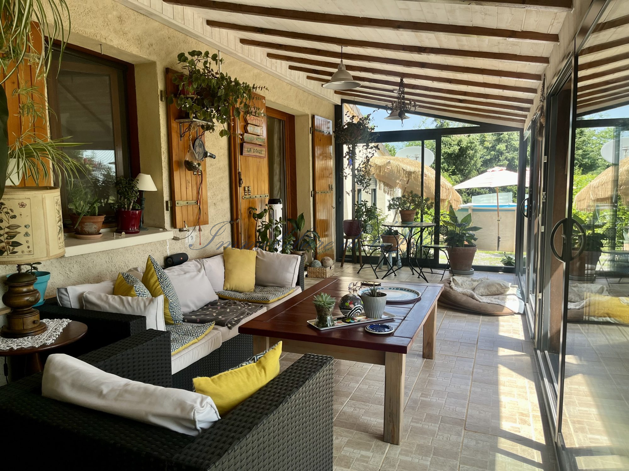 Située sur les hauteurs de la Douze, à seulement 20 minutes de Périgueux et du Bugue, une charmante maison de style périgourdin vous accueille dans un environnement calme et verdoyant, avec une vue imprenable sur les collines environnantes. Dune surface habitable denviron 120 m2 avec véranda, elle se compose au rez-de-chaussée d’une entrée, dun toilette indépendant, dune salle deau, dune cuisine aménagée avec un cellier attenant, et dune pièce de vie lumineuse ouverte sur la véranda, vous permettant de profiter pleinement du panorama. La partie nuit comprend une suite parentale avec salle deau en travertin, dressing, et toilettes séparées. A létage, une chambre ainsi quun grand palier offrent la possibilité d’aménager un bureau ou une seconde chambre, selon vos besoins. Ce bien est équipé dune pompe à chaleur, dune climatisation réversible, et dun portail électrique. Côté extérieur, vous serez séduits par une terrasse prolongeant la véranda, offrant une vue dégagée sur le bassin, une piscine hors-sol et un terrain de pétanque pour agrémenter vos soirées estivales. Un double garage avec atelier ainsi quun cabanon de jardin complètent lensemble. Le tout sur un magnifique parc avec diverses essences dun hectare, entièrement clos, qui invite à la détente dans un cadre naturel exceptionnel. La présente annonce immobilière a été rédigée sous la responsabilité éditoriale de Mme. Estelle CLOUET ,07.71.83.02.69, Agent commercial mandataire en immobilier au RSAC du Tribunal de Commerce de Périgueux, sous le numéro 931198774(EI)