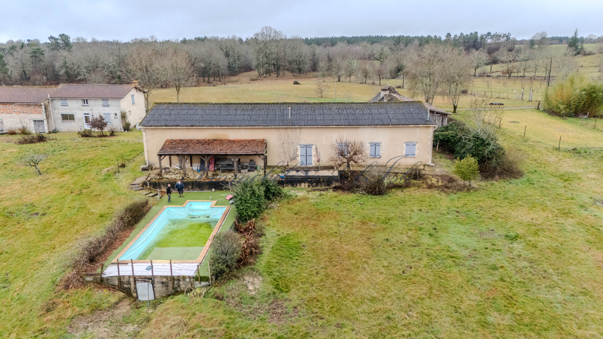 Au coeur de la foret de la Double, propriété implanté au milieu d’environ 30 ha de terres. Se compose d’une maison principale, avec en rez de chaussée une pièce de vie, cuisine ouverte, un salon, une arrière cuisine-buanderie. A l’étage, 2 chambres, un bureau, 2 salles d’eau wc. Egalement 2 gîtes (symetriques) de 70 m2, chacun avec pièce de vie cuisine ouverte, 2 chambres, une salle d’eau. accès terrasse et pisine. 2 granges de 150 m2 chacune, une dépendance. Extérieur, 30 ha avec étang de 2 ha, un verger clos, irriguer de plus d’un ha, prairie et bois. La présente annonce immobilière a été rédigée sous la responsabilité éditoriale de M. Quentin Bouault (EI), 06.73.27.44.90, Agent commercial mandataire en immobilier au RSAC du Tribunal de Commerce de Périgueux, sous le numéro 848095899.
