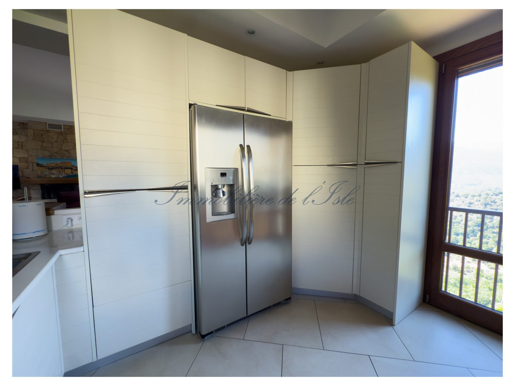 Dans une région au climat privilégié, au coeur du Parc Naturel Régional de Corse et bénéficiant d’une vue panoramique à 180o sur un paysage d’exception, cette propriété offre une opportunité rare de vivre dans un cadre grandiose au coeur des oliveraies. Idéalement située au sein d’un hameau, à seulement 650 m d’un village avec commerces, à 15 minutes des plages et environ une heure de deux aéroports, elle se prête aussi bien à un usage familial qu’à la création d’activités touristiques haut de gamme. La maison principale (160 m2) se déploie sur deux niveaux et dispose de deux garages. Rez-de-chaussée : vaste séjour lumineux de 66 m2 (triple exposition) avec cheminée, cuisine ouverte, patio dominant la vallée, et grande terrasse de 36 m2. Étage : une chambre et un bureau (ou chambre) avec mezzanine, beaux volumes sous charpente (hauteur jusqu’à 4,80 m), salle de bain complète, véranda, balcon et toit terrasse de 55m2 . Rez-de-jardin : appartement de 70 m2 comprenant séjour, coin cuisine, deux chambres, salle de bain, terrasse et jardin. Loft de 70 m2 avec belle pièce de vie de 41 m2, chambre, salle d’eau et balcon. Sous-sol : studio de 27 m2 avec accès sur grande terrasse de 40 m2, pièce de 24 m2 avec entrée indépendante pouvant être aménagée en studio supplémentaire, et cave. Cet ensemble de belles prestations conjugue confort, nature et authenticité, entre mer et montagne. L’équipement des locations(meublé de tourisme ***2026) et le fond de commerce peuvent être cédés pour 23 000 euros. Reprise activité maraichage-élevage d’agriculture possible.